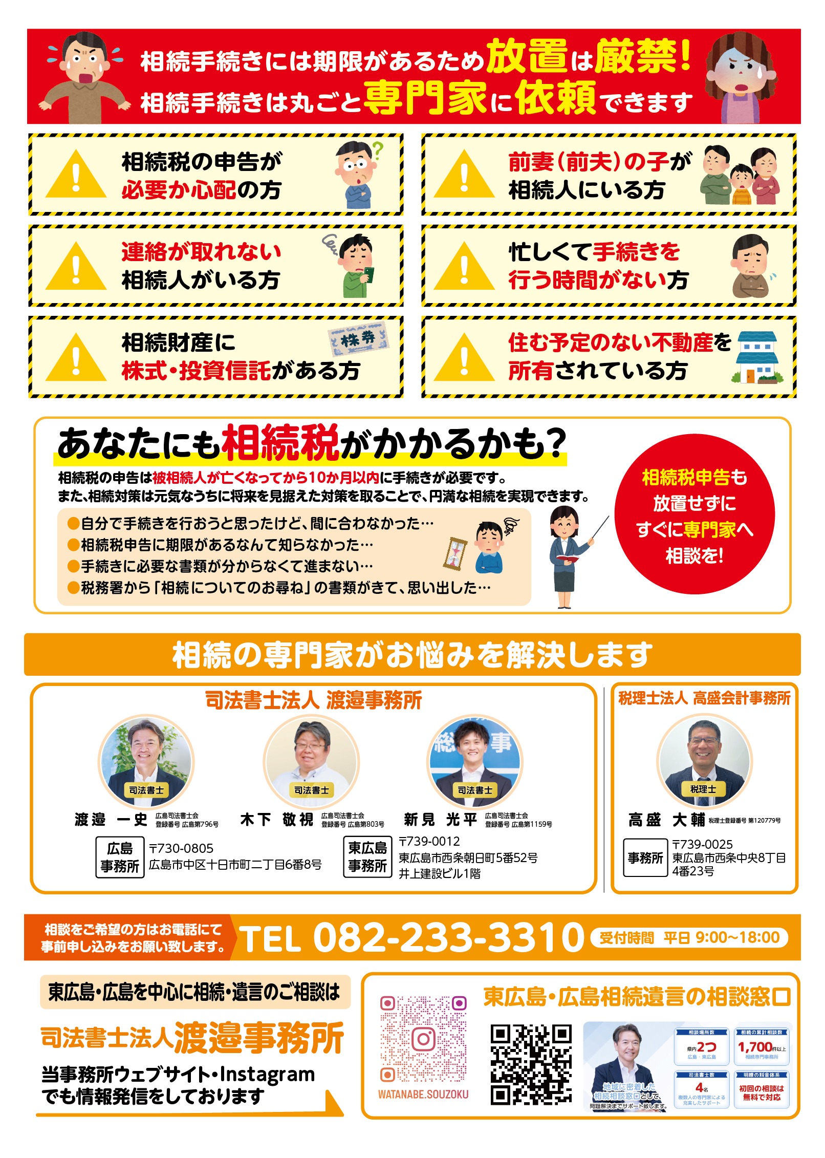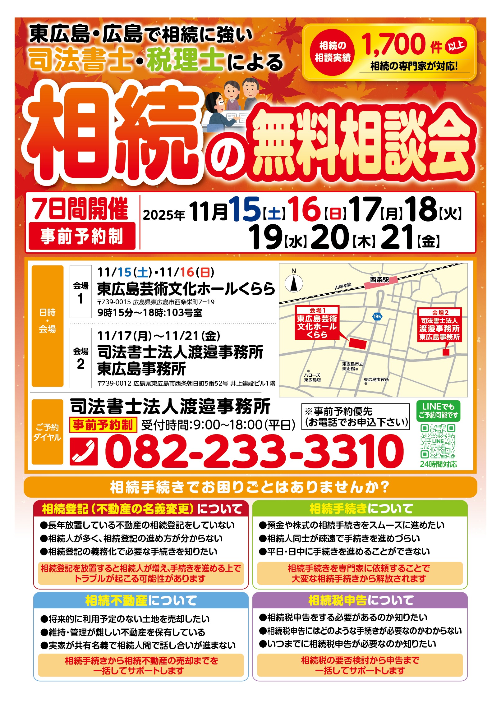 相続に強い司法書士・税理士にその場で同時に相談できるチャンスです。
